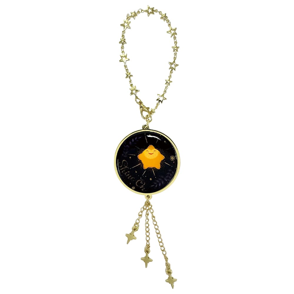 チェーンやチャームに星をあしらったキラキラ輝くバッグチャームです。