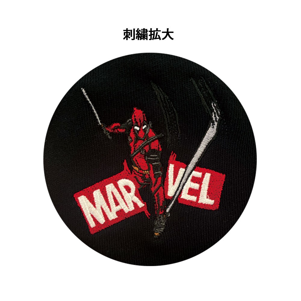 胸のワンポイント刺繍はMARVELロゴ。・・・をぶった切る俺ちゃんデザインです。