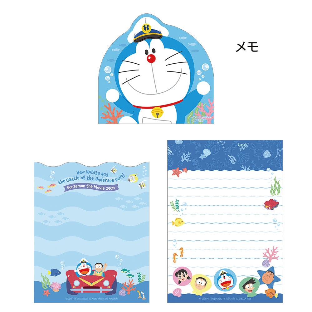 ドラえもんのダイカットがかわいい。絵柄3種の3段メモ。