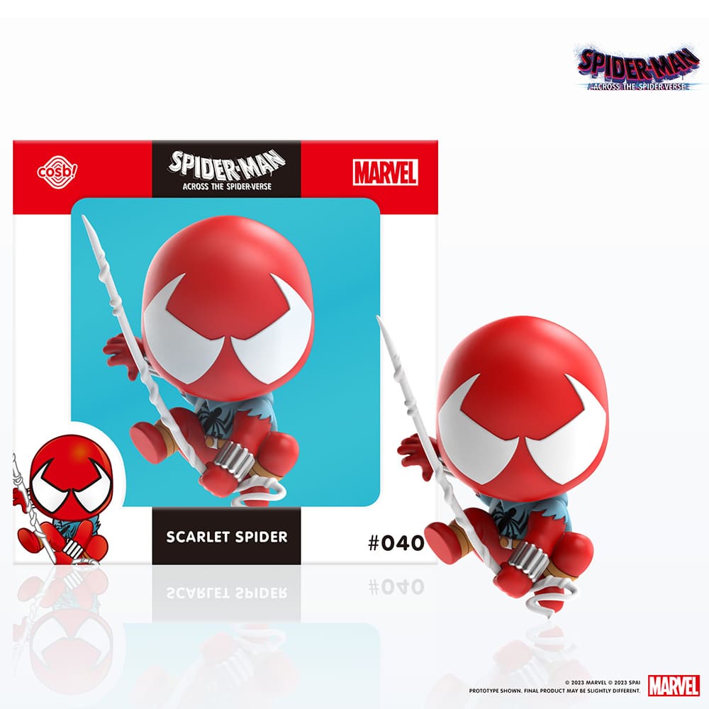 映画『スパイダーマン:アクロス・ザ・スパイダーバース』に登場するスカーレット・スパイダーを、全高約8cmのミニフィギュアで立体化。ヘッドはプルプル揺れる姿がユニークな、ボブルヘッド仕様。日本で企画されたオリジナルのパッケージは、そのまま飾っても可愛いウィンドウボックスとなっているぞ。