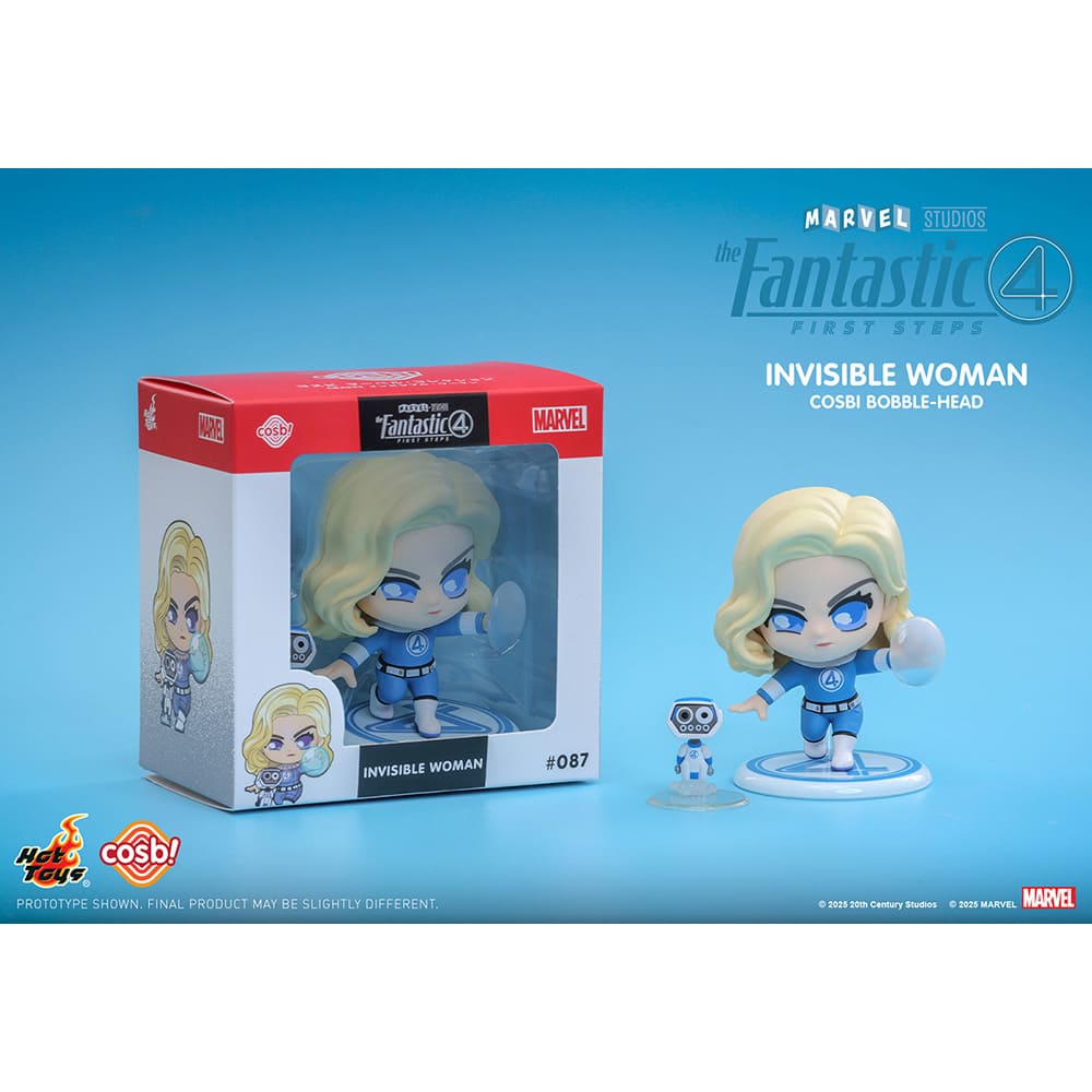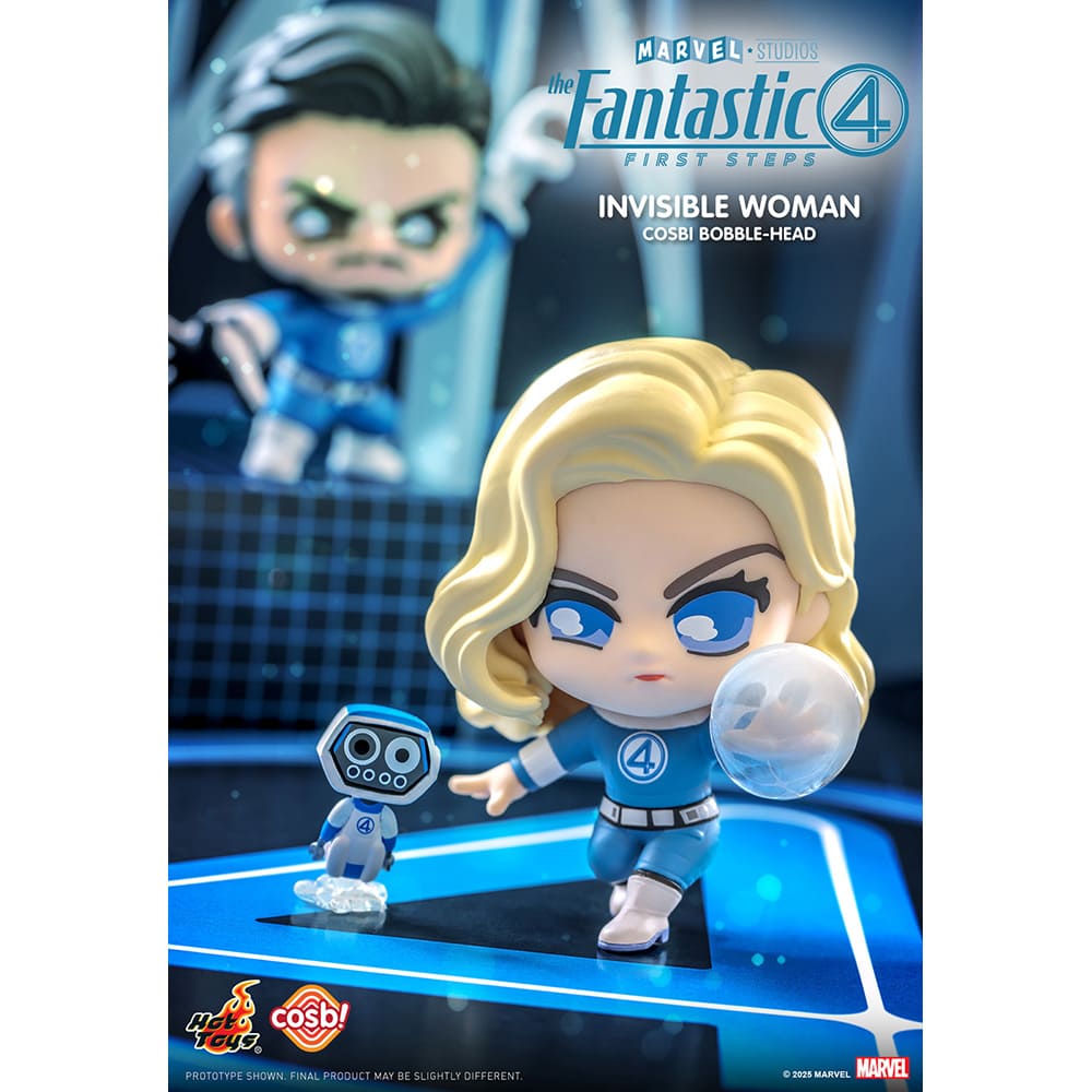 映画『ファンタスティック4:ファースト・ステップ』に登場するインビジブル・ウーマンを、全高約8cmのミニフィギュアで立体化。ヘッドはプルプル揺れる姿がユニークな、ボブルヘッド仕様。台座には、「ファンタスティック4」のマークがあしらわれている。また、ロボットのハービーが付属。日本で企画されたオリジナルのパッケージは、そのまま飾っても可愛いウィンドウボックスとなっているぞ。