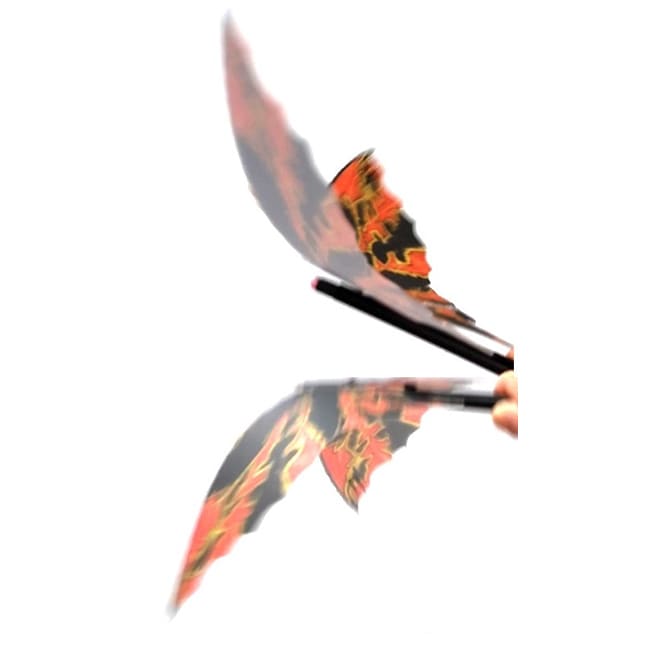 ペンのクリップを差して、うちわの取っ手として使用します。扇ぐとバトラの左右の羽根が羽ばたくように動きます。