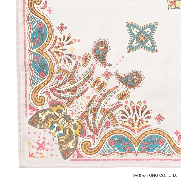 綿ローン生地を使用した、さらっとした肌触りの大伴サイズのハンカチです。モスラをモチーフにしたペイズリー柄デザイン