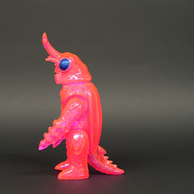 映画「ゴジラ対メガロ」公開50周年記念!蛍光ピンクのボディがビビットな海底王国の守護神ソフビ。 市販のブラックライト照明を当てると、お部屋がネオンカラーに!ゴジラ・ストアだけの青目Ver.です。