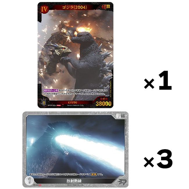 ※ゴジラ・ストア限定 『終わりなき決戦』1ボックス購入特典 PRカード「放射熱線」、ゴジラ・ストア限定 『終わりなき決戦』3ボックス購入特典 PRカード「ゴジラ(2004)」は特典のため、交換の対象外となります。あらかじめご了承ください。