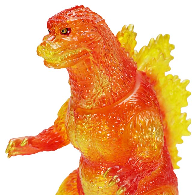 メルトダウンを起こすゴジラをイメージした、熱を感じるカラーリングクリアの成型と相まって、非常に美しいソフビに仕上がりました。
