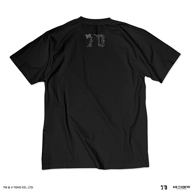 背中はゴジラ70周年ロゴをブラック箔で加工し、ゴジラのゴツゴツとした皮膚を再現した加工が施されています。
