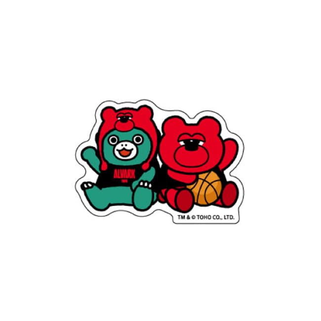 アルバルク東京マスコットルークとちびゴジラがバスケットボールを楽しむ姿をデザインしたクリップ