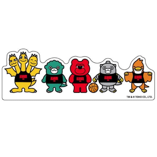 アルバルク東京マスコットルークとちびゴジラがバスケットボールを楽しむ姿をデザインしたクリップ