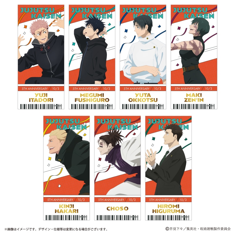 アニメ『呪術廻戦』5周年 ビジュアル第3弾 トレーディングチケット風箔押しカード 全7種 コンプリートセット