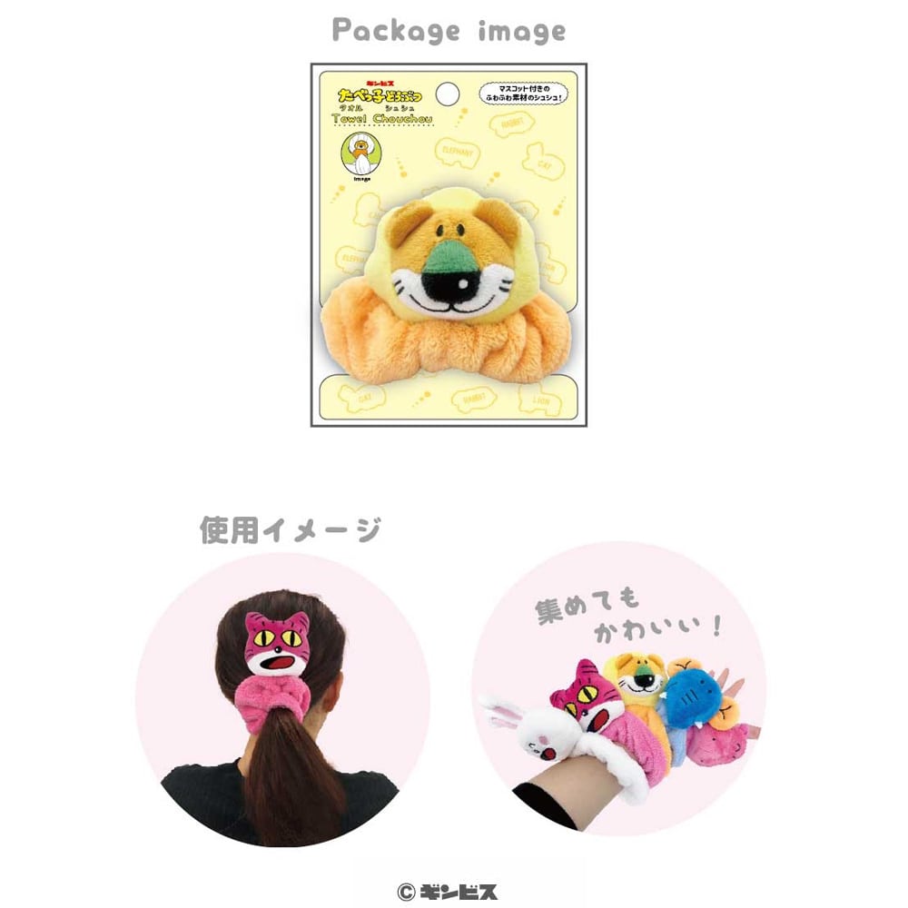 たべっ子どうぶつのマスコット付きのタオルシュシュです。