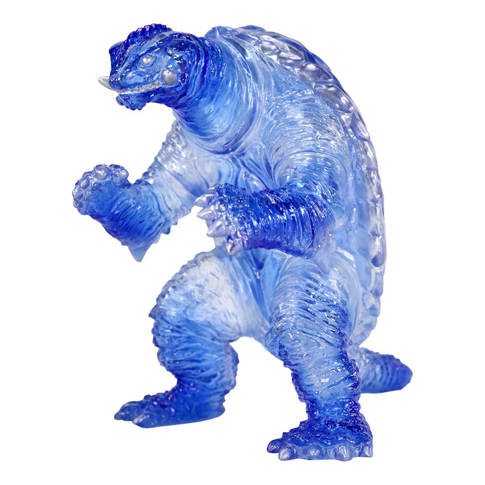 『ガメラ2 レギオン襲来』に登場のガメラ(1996)が、日本国内生産のソフビ職人たちによる透明度の高いクリア成形と、TOHO theater STOREのオフィシャルカラーをイメージしたクリアブルー彩色による美しい仕上がりにて登場!!