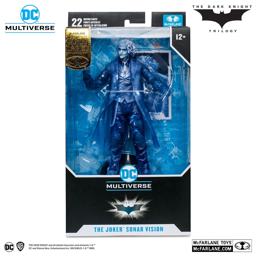 『ダークナイト・トリロジー』に登場するジョーカーを、全高約18cm、約22箇所が可動するアクションフィギュアとして立体化!バットマンの「ソナー・ビジョン」を通して見たときのビジュアルをイメージした、ソナー・ビジョン版となっているぞ。造形や質感にこだわり、細部に至るまで再現。パッケージはそのまま飾ってもカッコいいウィンドウボックス仕様だ。