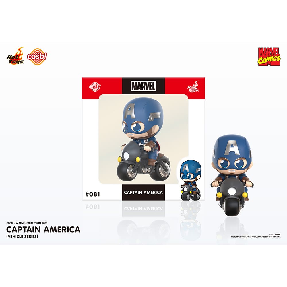 ホットトイズがお贈りする、シンプルで愛らしいフォルムと集めやすいサイズが特徴的なデフォルメフィギュア「コスビ」シリーズが、日本オリジナルパッケージで登場!「マーベル・コレクション」のビークル・シリーズより、キャプテン・アメリカがラインナップ!