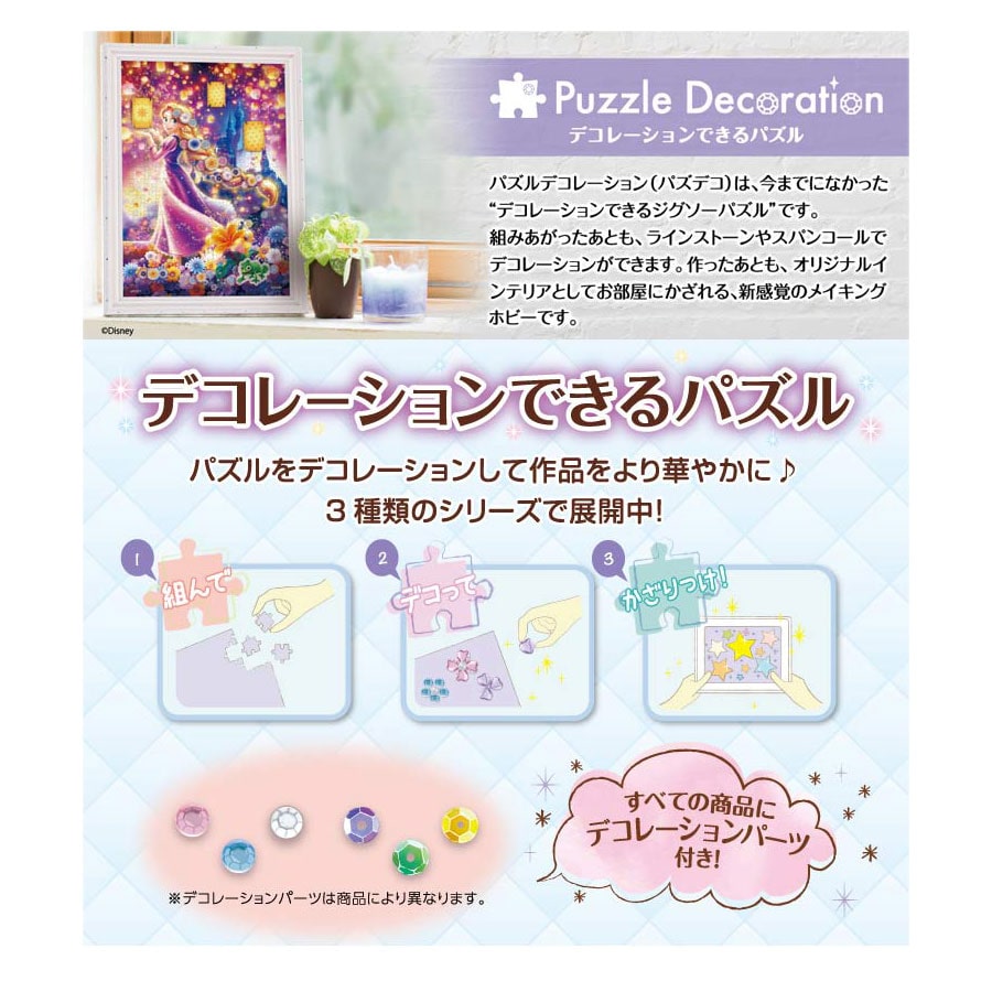 パズル本体、パズルのり×2、デコレーションステッカー×1