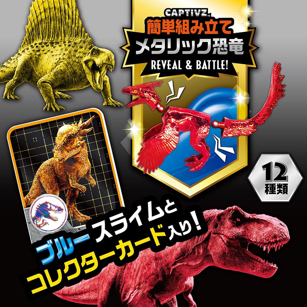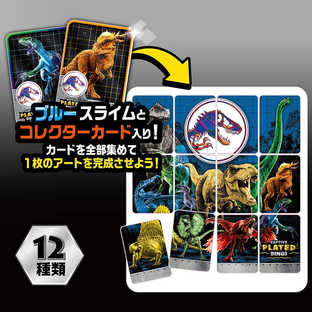 恐竜フィギュア×1、スライム×1、コレクターカード×1、リーフレット×1、卵型容器×1