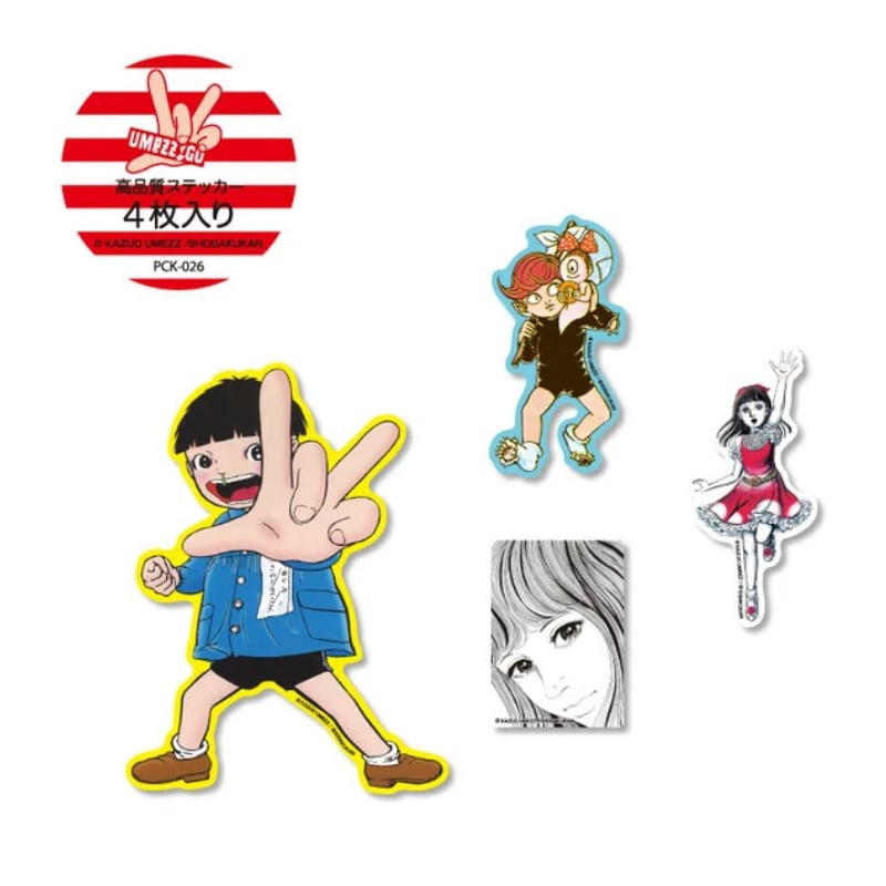 【4枚セット】ステッカーパック 楳図かずお アソート キャラクター ホラー漫画恐怖 イラスト PCK026