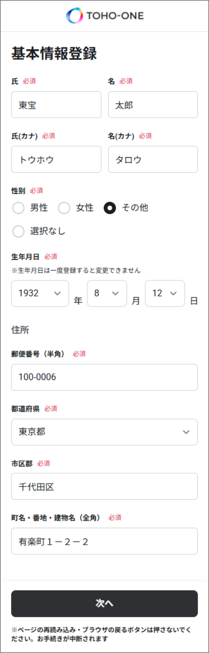 画面に従い、ご登録をお願いいたします。